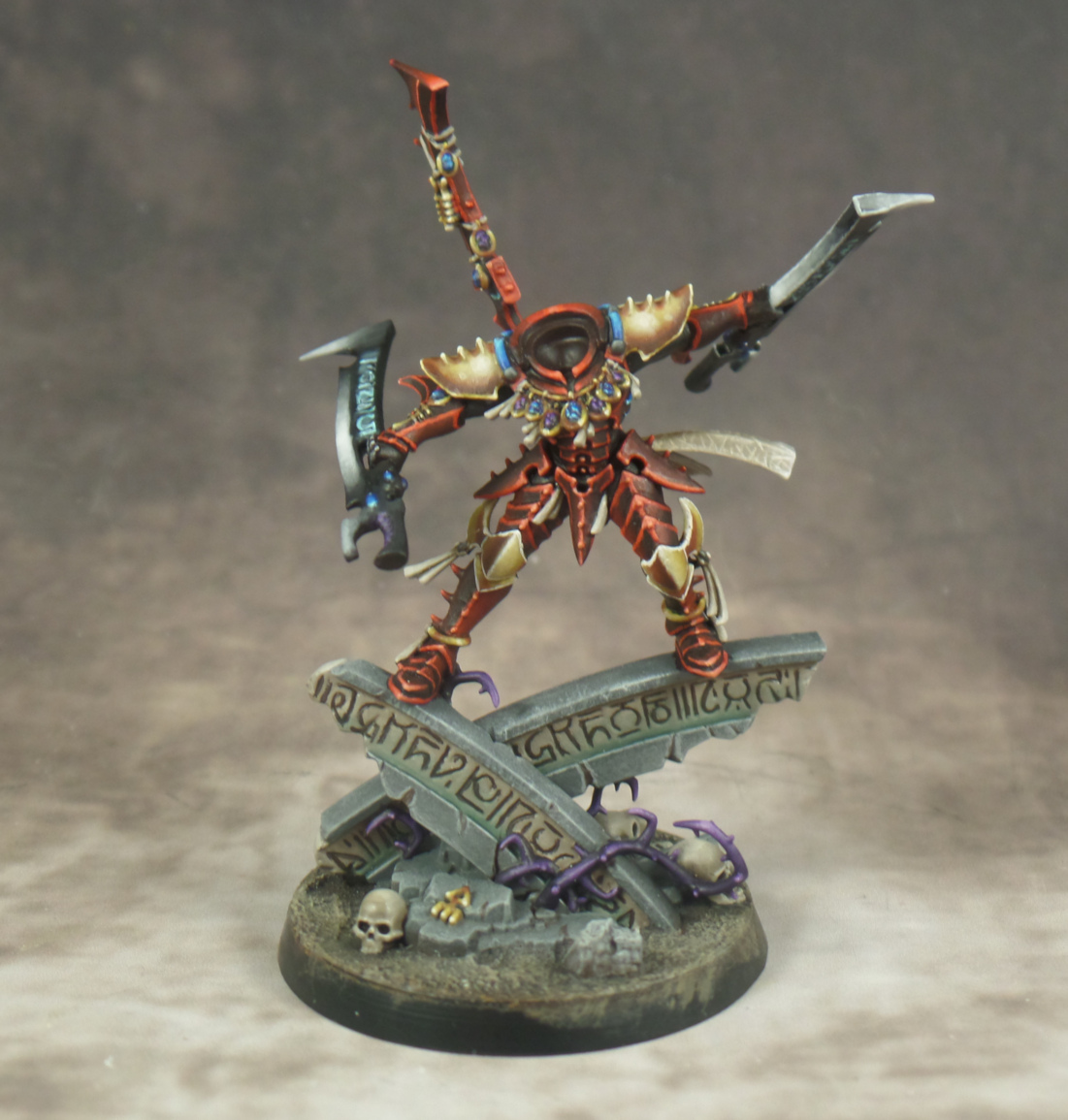 But seriously no. I canโ€™t imagine taking a month for one figure but I certainly do not paint nor tackle models as detailed as you do. And I really like the way the blades have come out; the curvature of the sword is enhanced by what you have done. If you made a painting video, I would watch it. But donโ€™t post him again without a head. ๐Ÿ˜€