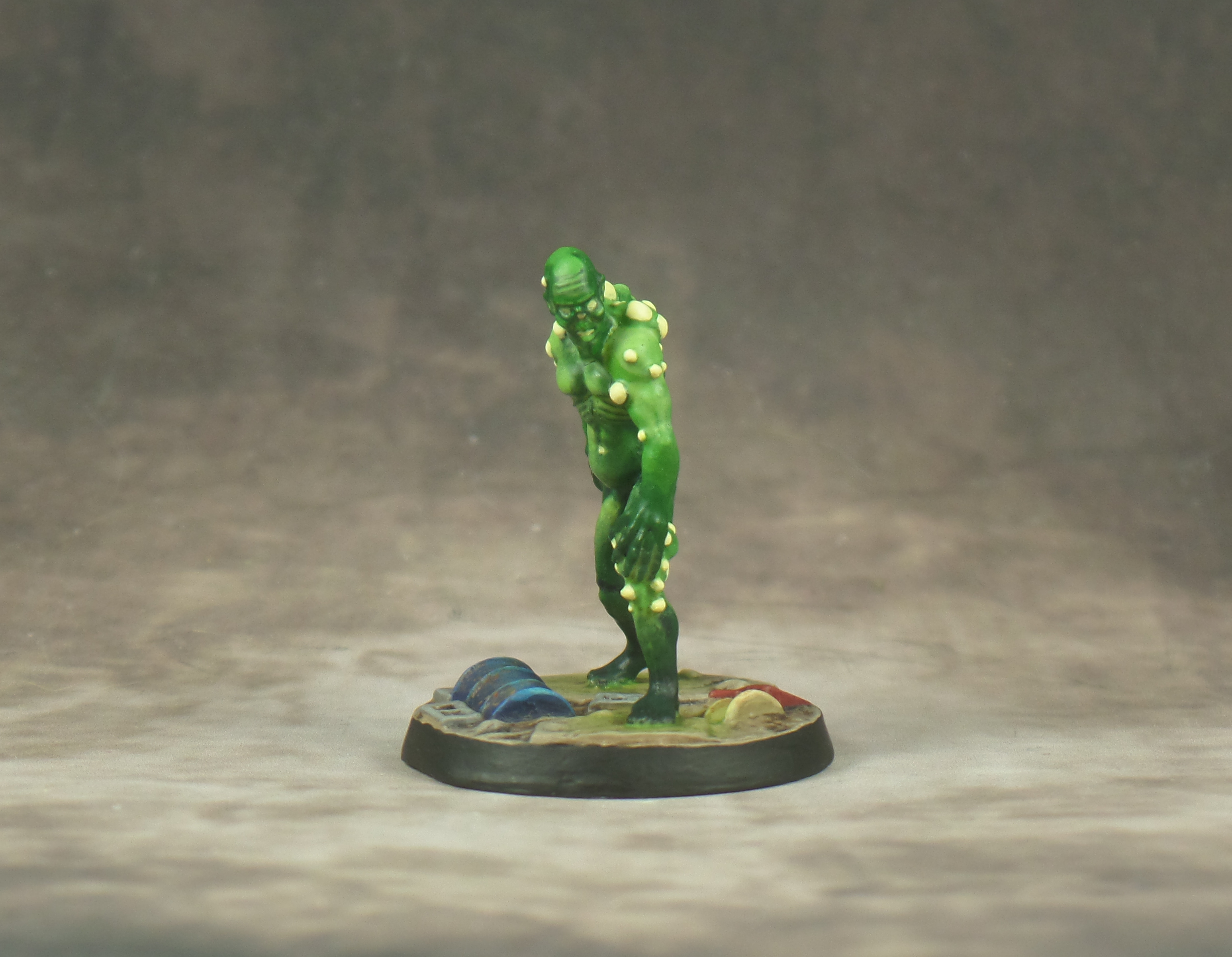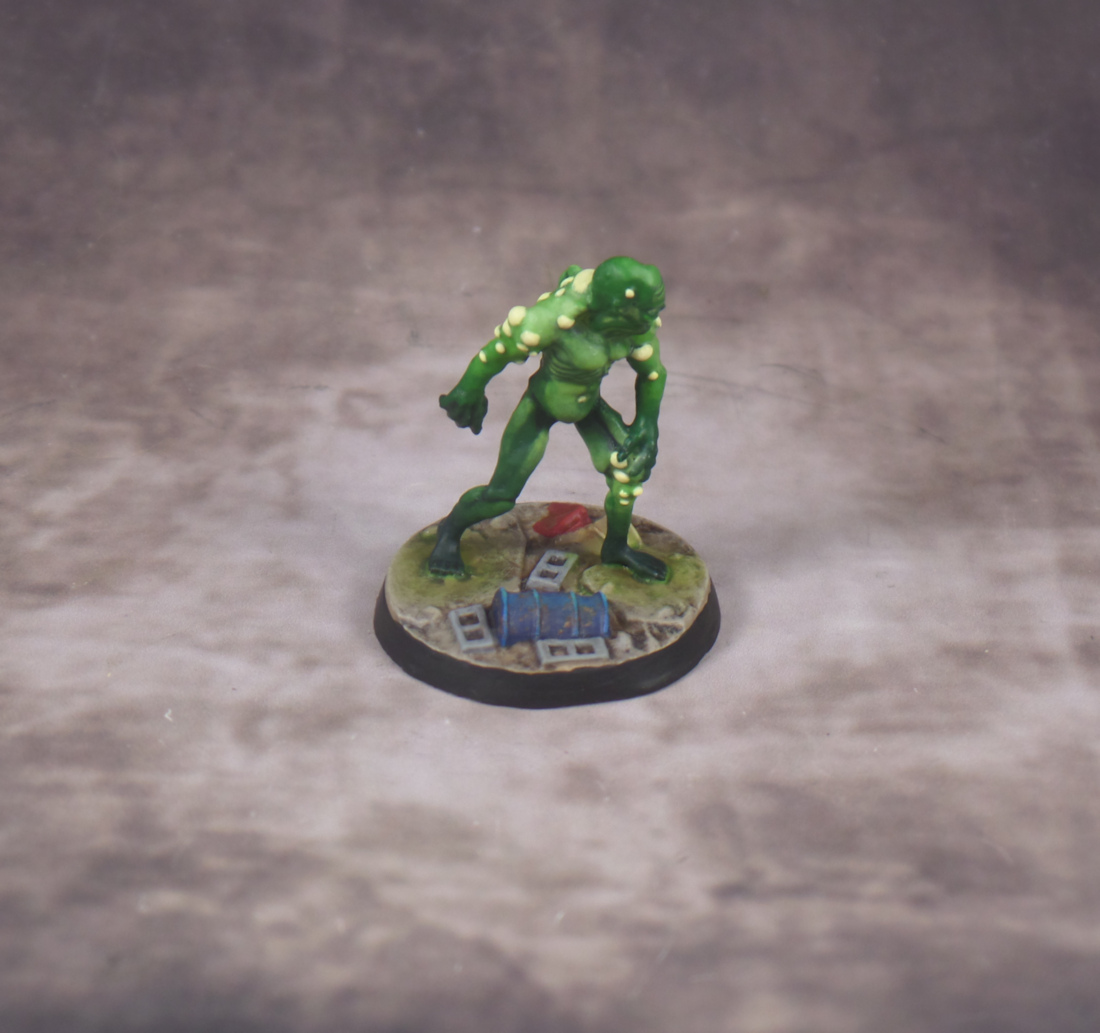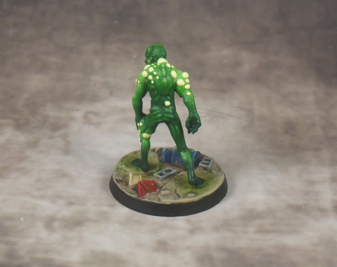 That ghoul looks great. That glow effect definitely works. Love the contrast of the white pustules and green skin. The base introduces some nice specks of colour, too.