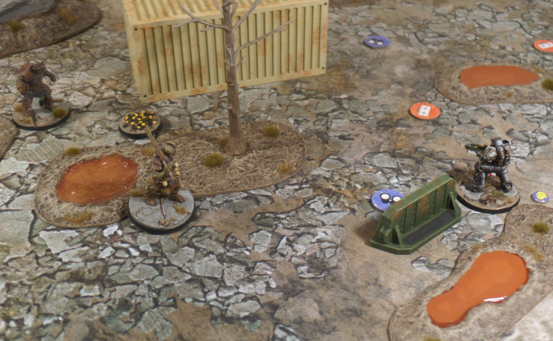 The mutants went first in the second round so the Brute activated first to try and finish off Daria. The missile hit again with extra damage thanks to a die roll and Daria had no choice but to withdraw with grievous wounds.