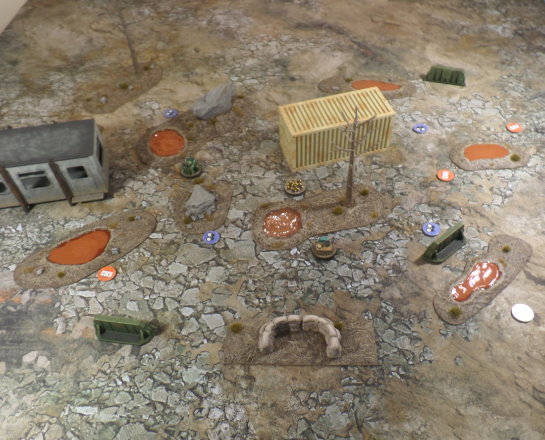 The scenario does give you guidelines for where to place the radiation pools and markers but it doesn’t give you any requirements on line of sight blocking terrain. I just used my best judgement on those (which arguably wasn’t all that good this time around!).