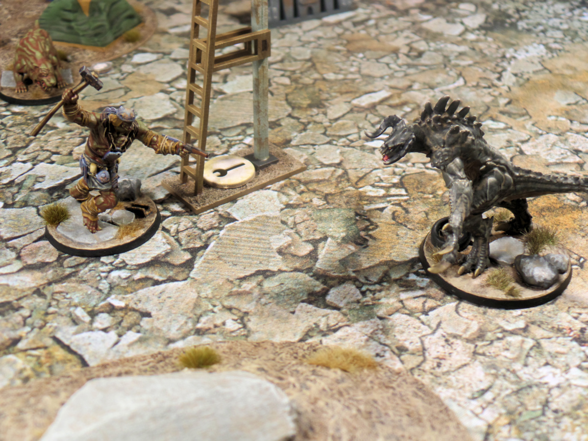 Round Four – The Survivors went first again as the model count remained unchanged. Aspirant Goddard activated first to try and hit Ram with his baseball bat. The first swing connected with a thud and caused two damage. The second attempt whiffed.
