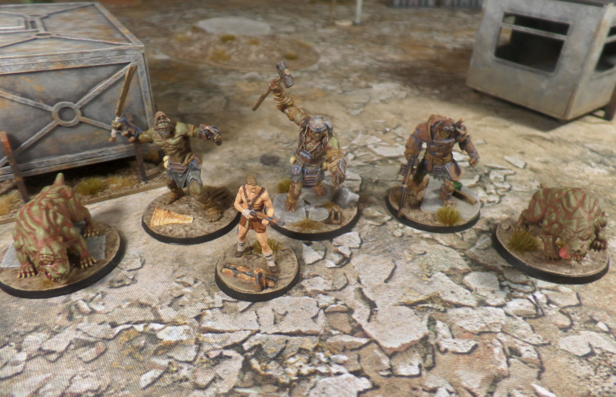 The Super Mutants – The Super Mutants have numbers in this scenario with two mobile hounds that I never seem to use effectively. The Enslaved Tech is very fragile and not useful for combat but makes a great siren operator. The Aviator is not a bad shot thanks to his special goggles and so he will be the only unit on this side interested in shooting instead of melee combat. The Super Mutant and Ram, the Brute, both excel in close combat and will try to get there against the softer Survivor targets whenever possible. Of course, if the Deathclaw damages or kills some Survivors along the way, then that’s more than acceptable too.