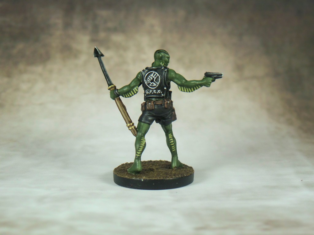 There were some challenges like soft details and a floppy harpoon but I decided not to spend much time trying to straighten it because they always seem to stay a bit bent even with the hot/cold water treatment. Somehow I got the fins and Abe’s badge looking good even with the lack of detail so I am happy with that. I will have to tackle the bust/marker for Abe in the near future so that I then have enough investigators to play a game of Hellboy.
