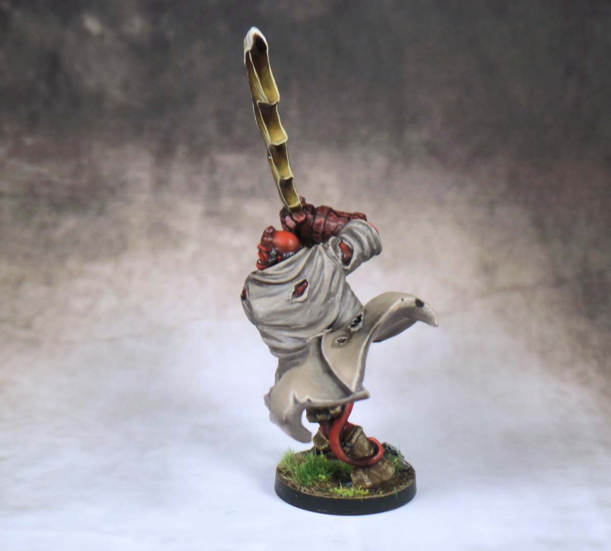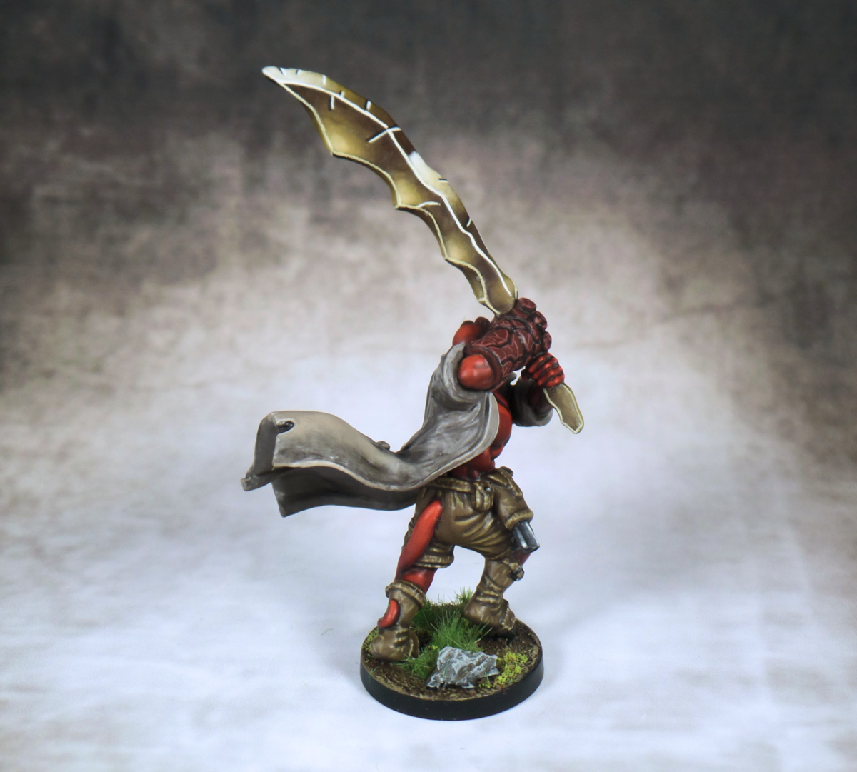 Excellent work on Hellboy here. The sword in its final form is certainly a unique part of the model – doesn’t look like metal at all really – more like some sort of strange amber-adjacent crystal perhaps? I also like the gradient of colours on his cloak with the touch of brown added toward the bottom as well as the foot details. Still, the original one you have there is no slouch – and in a lot of ways I prefer it to the new one (sorry!) which I think is largely due to the model being much more of a “classic” Hellboi.