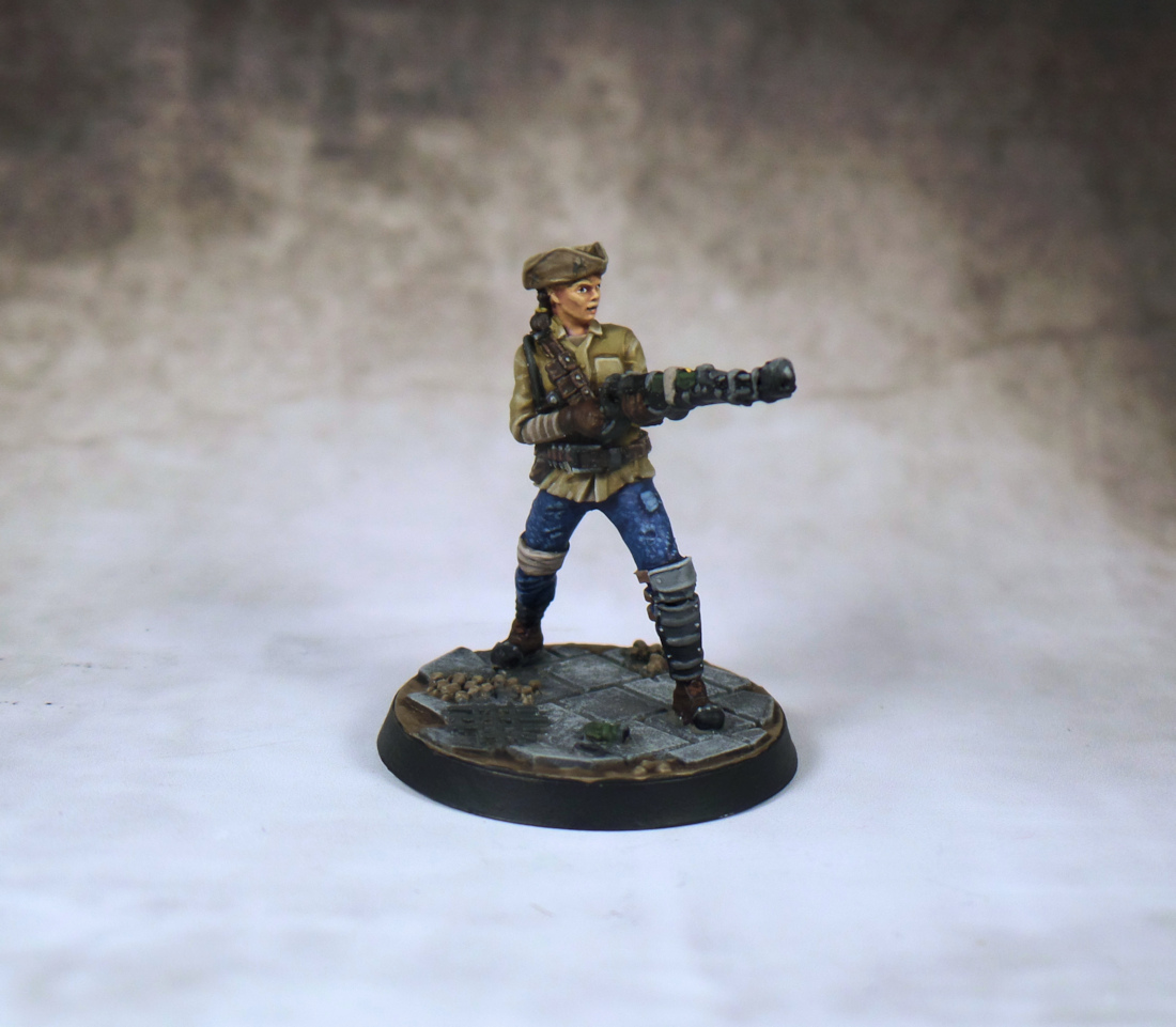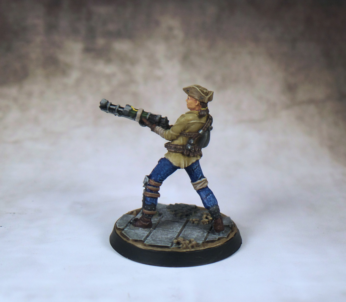 I don’t know if it is the malaise brought about by February or work being busy, but I’ve been feeling a little burnt out this week. One of the things I painted this week probably didn’t help matters much either truthfully. I thought I’d tackle a miniature that’s been assembled and primed on my desk for months now. Unfortunately, it didn’t bring me a ton of joy working on it. This Minutemen member (or should I say Minutewoman?) has a pretty rough sculpt. Her face looks slightly deformed on one side (its hard to see in the pictures below) and the rifle was a pain to paint as well. She hasn’t been varnished or had any rust applied yet which should make her look quite a bit better. The one thing that was an interesting experiment were her denim jeans. Denim is tough to paint realistically on miniatures. I don’t think I’ve ever really mastered it and I thought I’d try a kind of stippling effect to show distress. I think it looks pretty decent. Not display miniature worthy but good for a gaming piece like this.