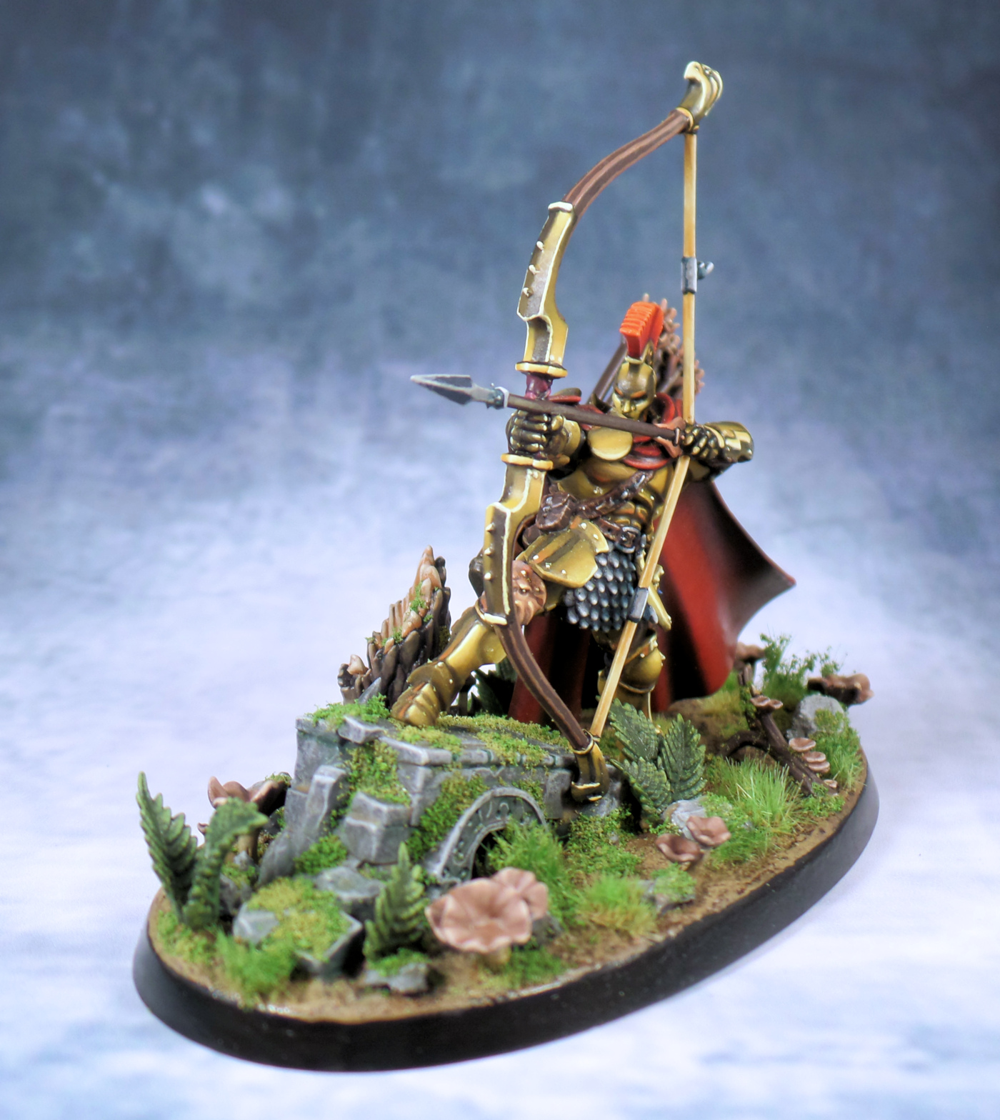5. Stunning work mate, that base has come out great really give the impression of a humid forest, and give a lot of story to the piece, I can imaging him hunting down a fearsome beast lining up that killer shot on it. As you said its really picked your game up.