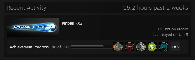 And 80% of achievement on pin ball is very impressive I look forward to seeing what other games you picknup.