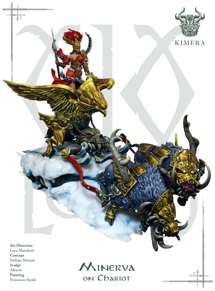 Talk about a project! I think I’d be looking at spending close to year on that model if I took it on. Truthfully, I don’t think the chariot is as good of a miniature as Minerva on her own. That eagle would add a ridiculous amount of gold to paint and I think would be a bit tedious in the end. Kimera Models teamed up with Aradia Miniatures and Aradia’s take on a 75mm scale chariot is quite a bit more impressive and doable. Its a shame that its a Kickstarter exclusive and not available for purchase anywhere.