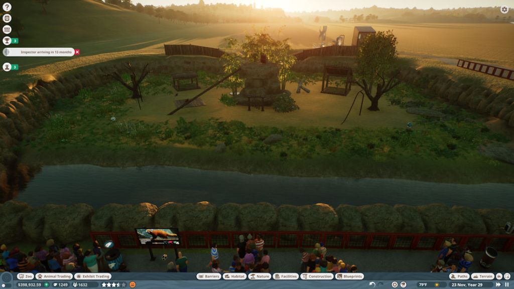 The screen shots look great, and you are experiencing the greatest problem with zoo’s making the enclosure a suitable environment for the animals, but also the people visiting can actually see them.
