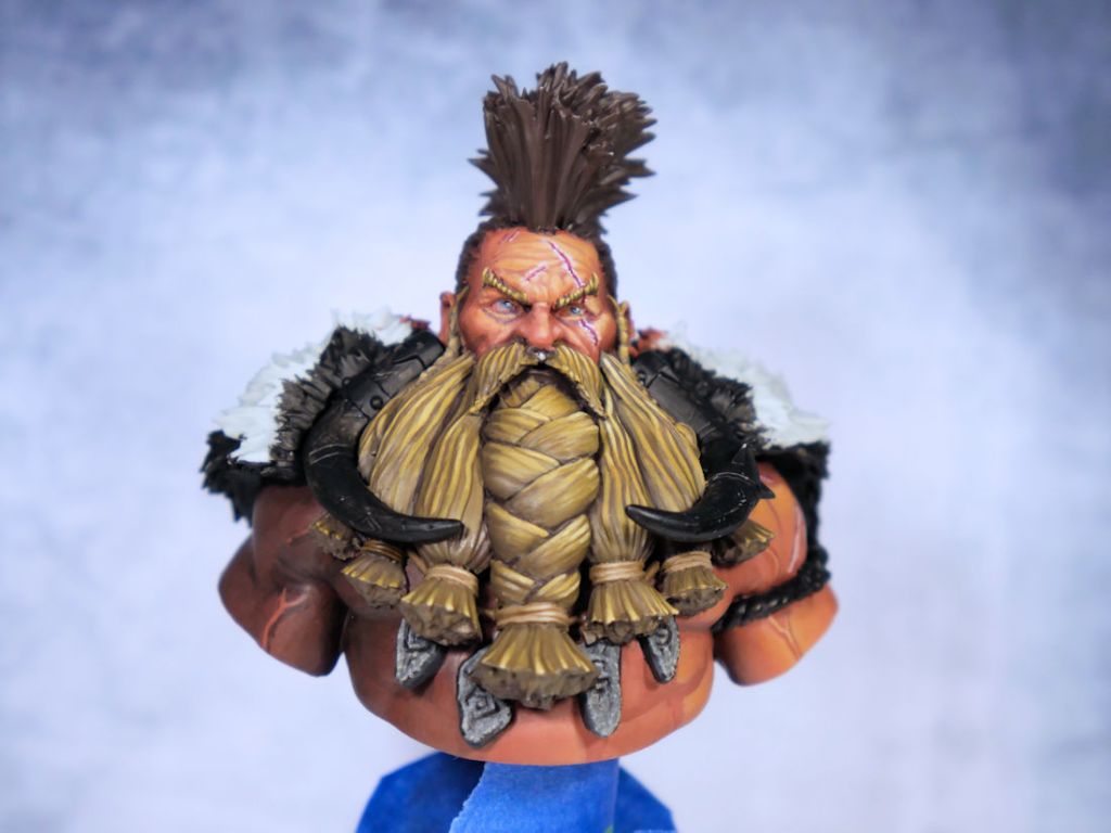 The eyes are so important on a mini that it doesn’t feel good to not get them right, for me anyway. I think he does appear to be gazing up though I think that’s appropriate for a dwarf and one who probably fights a lot of things bigger than he is 🙂 In all seriousness, I will keep working and practicing painting eyes on busts and see if I can’t improve in the nearish future.