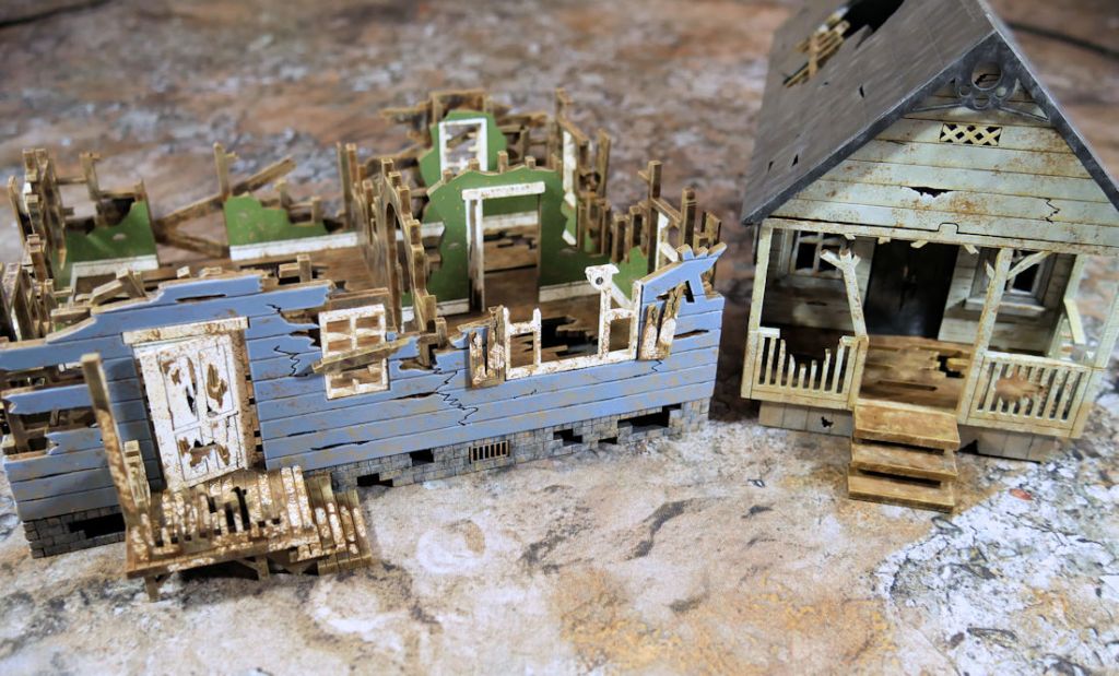 Fantastic work Jeff, and having different styles of weathering in a post apocalyptic world will add another level to your board as weathering never happens evenly, as not everyone painted their windowsills at the same time, so will get more or less on each frame. The only criticism I would have would be the boarded door timbers being in the same colour as the house, as these were likely to be additions near the apocalypse or after, but that’s just nit picking. Would be interesting to see what you’d do for a zombie apocalypse, and hope this idea comes to fruition.