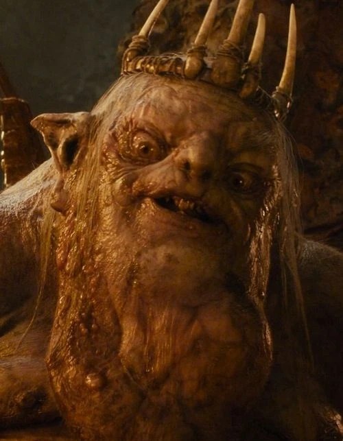 One of the things that I failed to mention previously is that the Goblin King might be the hardest miniature in the whole LOTR/Hobbit line to paint like in the movies. Its so hard that almost nobody attempts it (though I have seen a couple pretty cool attempts out there so kudos to the brave souls who have!). Here’s what the King actually looks like in the movie.