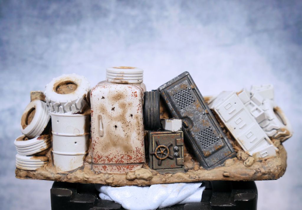 This is the final junk barricade of three and truthfully, it feels like its been sitting around for a while and I figured the Paint What You Got Challenge is the perfect time to finally get it done. There are some tricky things to paint on this one including the locker (which I couldn’t find any great visual references for online) and the refrigerator which took longer to paint than I expected (and I forgot to paint the fridge’s handle so it isn’t technically done yet). My completely arbitrary goal is to try and outdo the previous barricades I painted since I’ve learned some things over time but we’ll see what I can manage in the end.