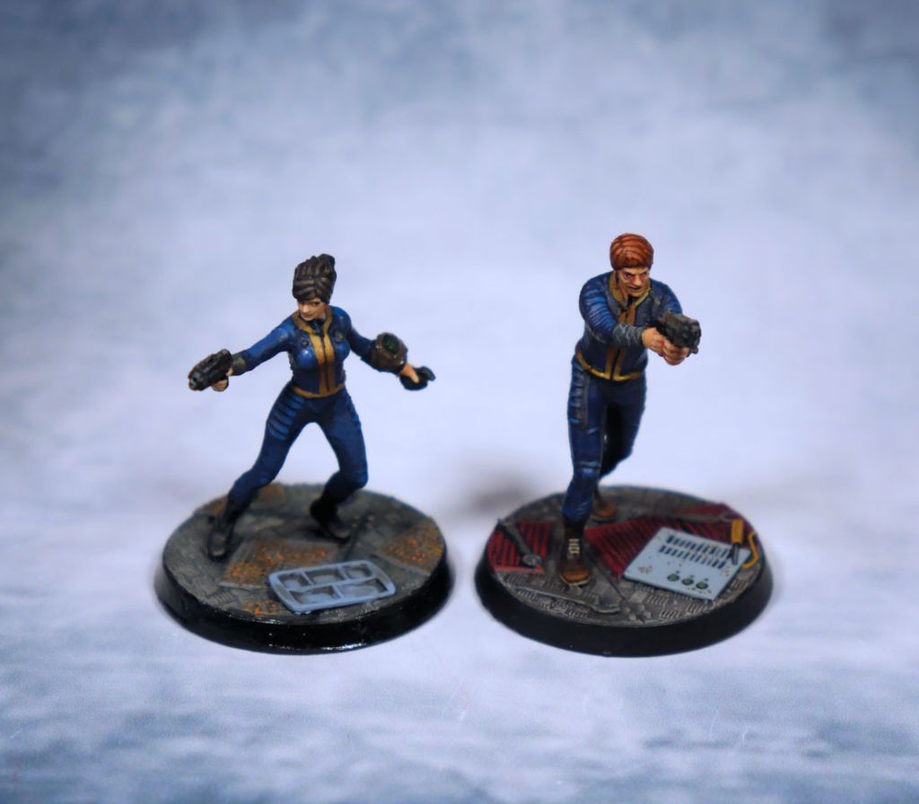 The Vault Dwellers are one of the easier and quicker Fallout minis to paint and this one was no exception. I did find his face a bit tricky and his hair wasn’t as crisp as I expected but I think it looks alright in the end. Here is a look at the two Vault Dwellers I own next to each other.