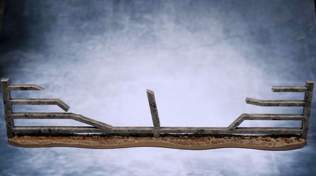 We have a little surprise for this week’s update! On Black Friday, I put in what has become an annual terrain order with Black Site Studio. It turned up recently and so in my excitement, I decided to put some of my purchases through its paces. This year I decided to pick up some much needed fencing and something else I’ll talk about in a minute. While there are quite a few things I need to really bring my post-apocalypse neighborhood to life, I figure fencing is a fairly high priority. I’m pretty sure Black Site made a pretty nice looking picket fence set at one point but they don’t any longer so I decided to go with their Farmer’s Fence for now anyway. The piece I worked on was quick and easy to assemble, if a little hard to glue vertically straight but I figure that’s okay because this type of fence is usually a little rickety. Here’s a look at it.