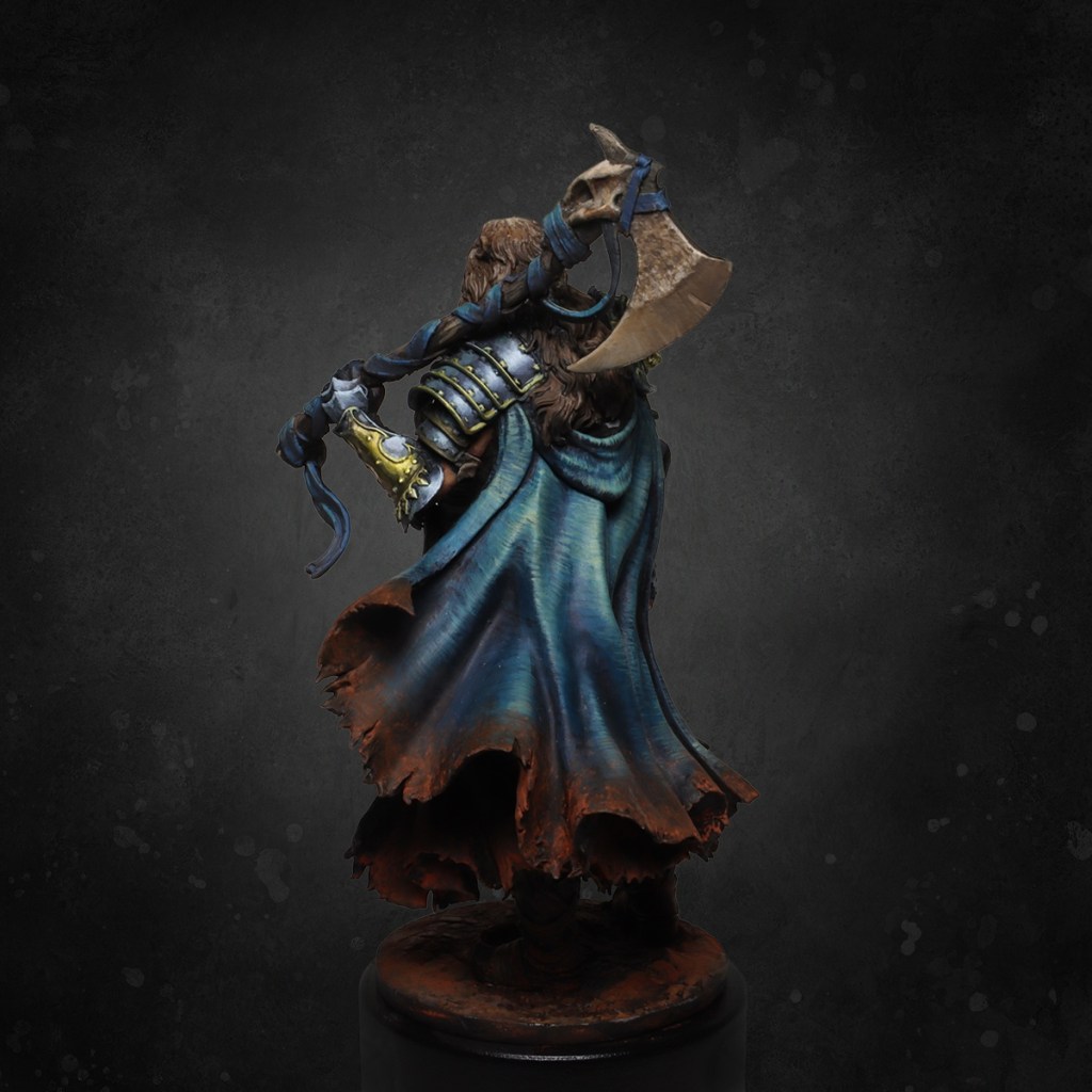 I also am working on the cloak which was my biggest concern on this mini. I like to paint cloaks that are pretty pristine and have smooth blends but that is not what this guy is working with. The entire thing is frayed at the bottom. I also noticed that people tend to add more texture to clothes at 75mm which I’ve never done before. Here’s a great painted example by Vincenzo Celeste that he did for Kimera as box art.