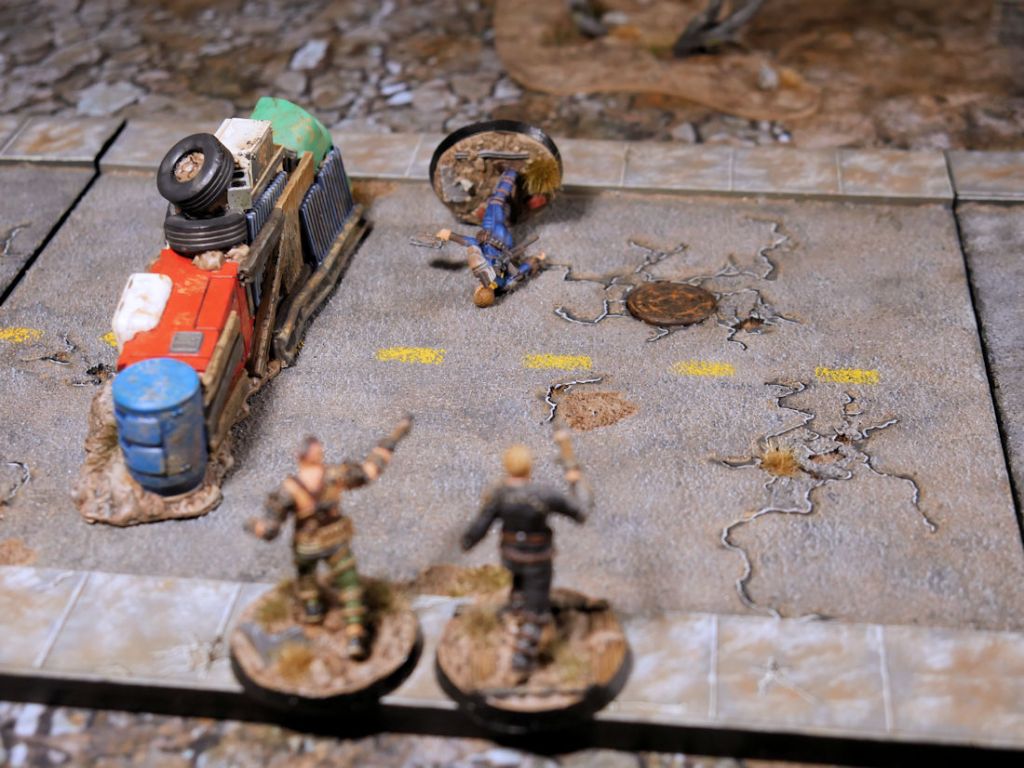 With the Raiders and Survivors tied on model count for the first time all game, the Raiders finally get to go first which is more bad news for their opponents. The only good news is that both Smiley and the Raider both became addicted to their respective vices and would have penalties instead of stat bonuses to their shooting.