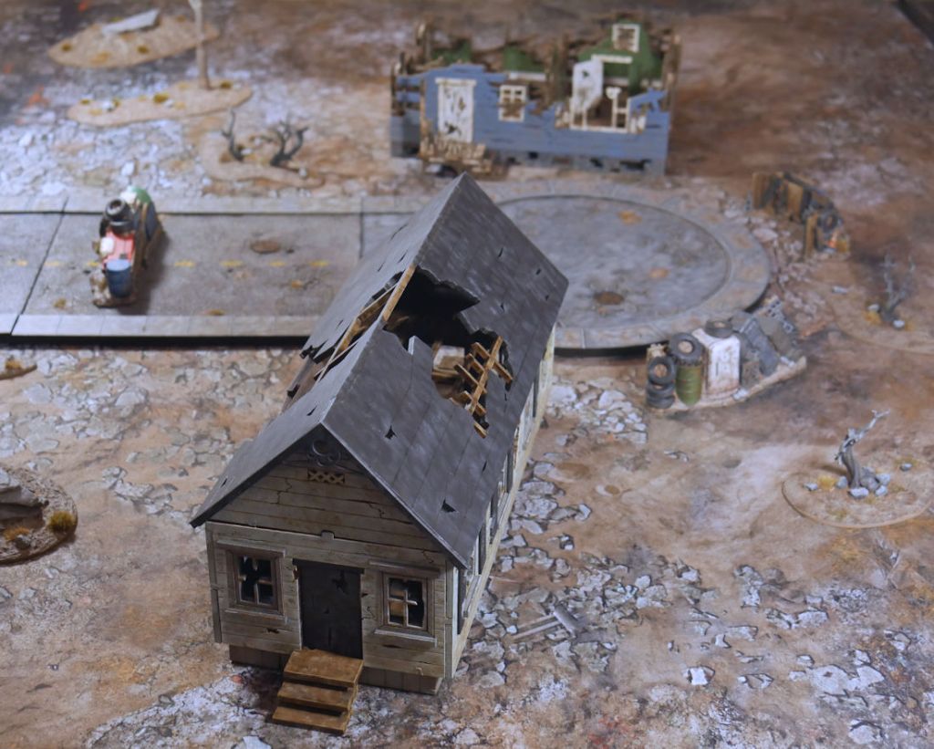 Since I managed to get some new terrain done and finish the Core Set of Raiders a while back, it seemed like as good of time as any to play Fallout. This report will be a little more in-depth and touch upon various rules since I’m using a new faction and some new item types and I thought some readers might be curious how they work.