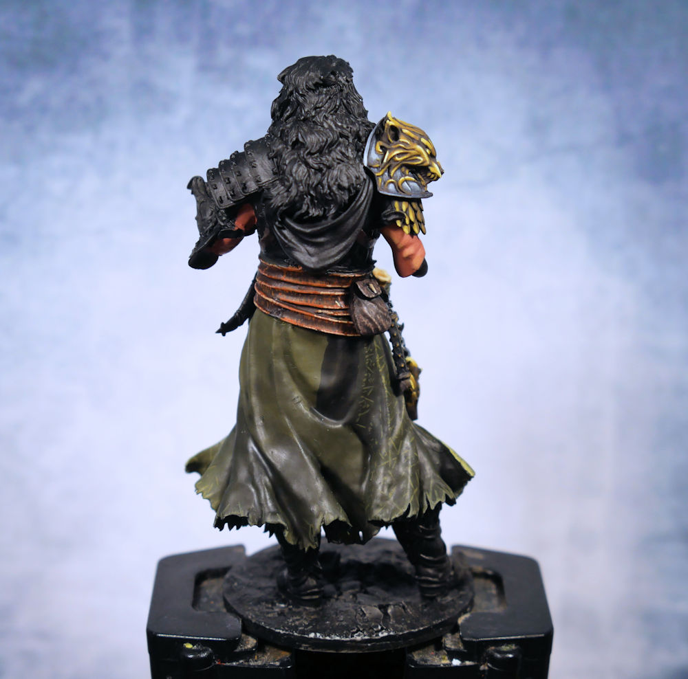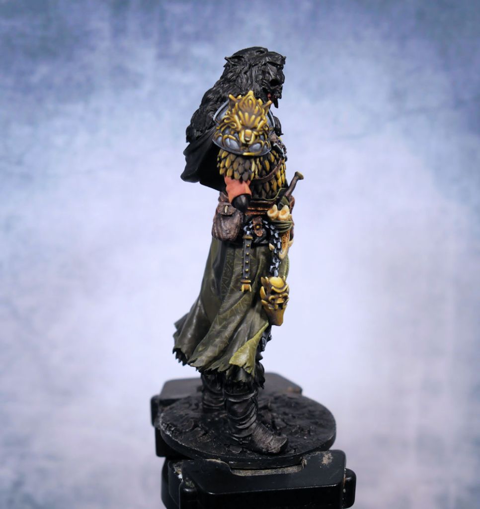 I was in the thick of things on Lokaris last weekend and didn’t have enough to show off, but I’m back with another update on this ambitious and long-running project. I tackled one of the most important parts of the miniature to me, which is his wolf shoulder plate. Its really draws the eye and of course, its cool-looking so I want to get it right. It is tricky because its metal and it has pretty fine details with non-traditional shapes. If you look closely at people who have painted this miniature, everybody’s done it a slightly different way, which I usually take to mean that its hard to get it right.